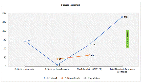 | Total, Batería de Funciones Ejecutivas | 278 | Alteración severa | ||