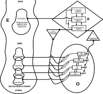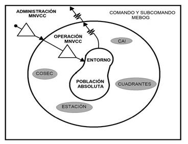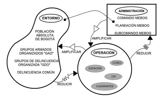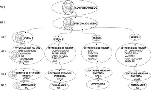 • El sistema 5, de políticas, es representado por el rol de comandante de la MEBOG y recibe apoyo de la Dirección de Seguridad Ciudadana (DISEC).