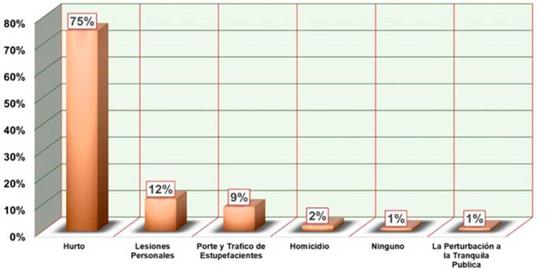 Figura 6 Participación porcentual de los delitos más frecuentes en los cuadrantes de Bogotá.