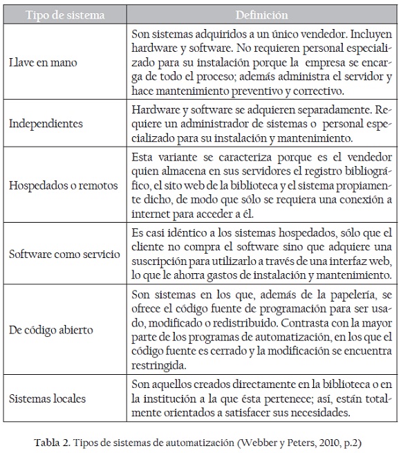 Considerando cada una de estas ideas, se podría señalar que un sistema de automatización de bibliotecas es una mezcla de personal capacitado, software, hardware e información, que ayuda a optimizar las diversas actividades de la biblioteca.
