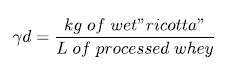 Stages of the whey processing: Protein precipitation was carried out in an industrial boiling pan of 150 L of total capacity, processing a volume of 70 L of acid whey from the production of stretched-curd cheeses in the SENA C.A.S.A. Piedecuesta, Santander. In it, the whey was acidified up to a pH of 4.4 by adding commercial lactic acid, keeping temperature at 93 °C, for 40 min [13]. Subsequently, the two phases obtained, "ricotta" on the surface and whey on the bottom, were separated by draining the latter and collecting the "ricotta" on canvas. The deproteinization yield (yd) was calculated using Equation 1.