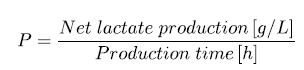 | Fermentation medium | Lactate production [g/L] | [g/g] | Volumetric Productivity [g/L.h] | |