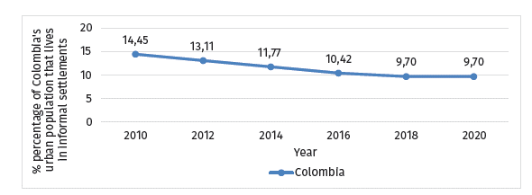 Figure 1 Percentage of Colombia's urban population living in slums, period 2010 to 2020.