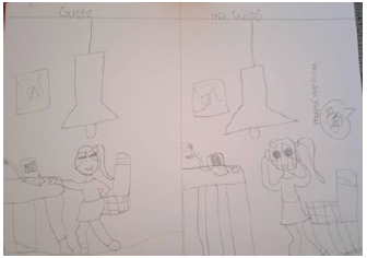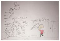 The children's expressions reflect two key aspects. On the one hand, different family members participated in the school activities assigned for the home. On the other hand, the children themselves assigned responsibility to their parents for helping them complete their homework. Image 3 below highlights their enjoyment of being with their family, while Image 4 shows that the relationship with the family was not always smooth. In some cases, they experienced their "aggressive mom" during virtual classes.