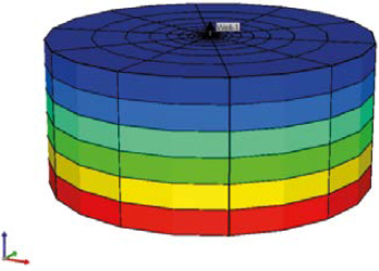 Simulation base cases. Table 2 outlines the simulation base cases designed to assess the impact of relative permeability curve variations on water production levels. To encompass representative conditions across the country, three scenarios with differing permeabilities were proposed, as detailed in Table 2. In all cases, a single well at the center with a drainage radius of 1000 ft was modeled, as illustrated in Figure 11. The simulations were conducted using a radial grid system comprising 25 grid blocks in the radial direction. Each productive layer was represented by a single grid block in the vertical direction.