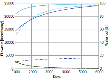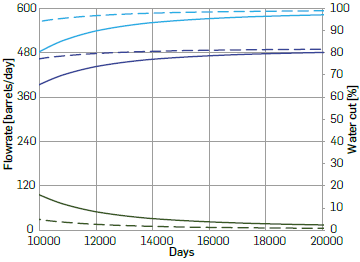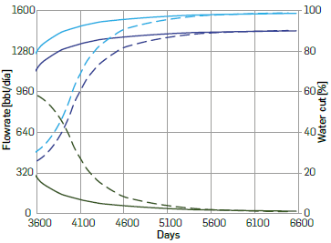 Case 1 (Figure 12) exhibits significant reductions in water production without affecting crude oil production significantly.