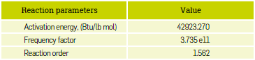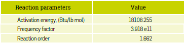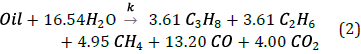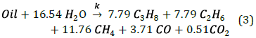 Next, a chemical reaction (Table 3) is proposed where the original oil of the simulation model reacts with water, generating combustion gases and light hydrocarbons.
