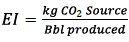 Carbon - intensity index: Given by the amount of CO2 produced (surface + reservoir) divided by oil production, that is: