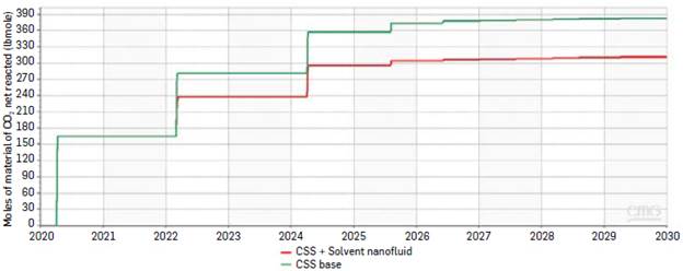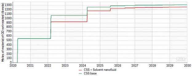 Figure 9 shows the estimation of CO production for the hybrid technology of CSS + naphtha-based nanofluids and the base case.