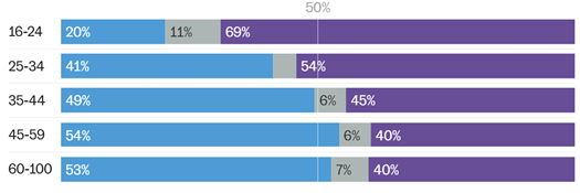 Con veintiuna de las veinticuatro provincias conquistadas, y por más de diez puntos de diferencia, Milei derrotó de manera contundente a Sergio Massa, candidato del oficialismo y ministro de Economía. Alrededor del 70% de los menores de 24 años declaró su intención de votar por Milei, mientras que, como se puede ver en la figura 1, conforme avanzaba la edad, aumentaba el apoyo a Massa (Andrino e Hidalgo 2023).