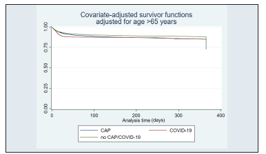 Figure 3 Age adjusted survival. CAP: Community-Acquired Pneumonia; COVID-19: coronavirus disease 2019.