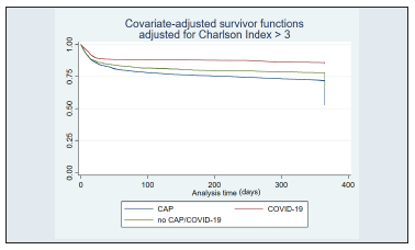 Figure 4 Charlson index adjusted survival. CAP: Community-Acquired Pneumonia; COVID-19: coronavirus disease 2019.