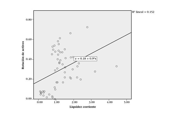Figura 1 Modelo de regresión lineal para liquidez corriente y rotación de activos