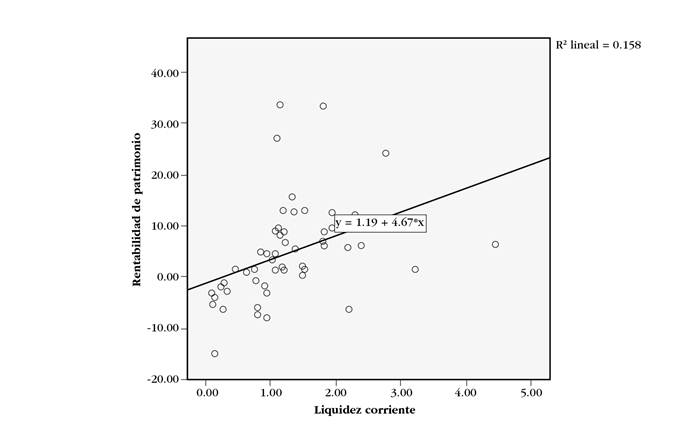 Figura 4 Modelo de regresión lineal para liquidez corriente y rentabilidad sobre el patrimonio
