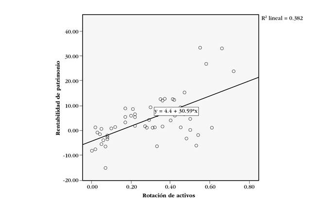 Figura 5 Modelo de regresión lineal para rotación de activos y rentabilidad sobre el patrimonio