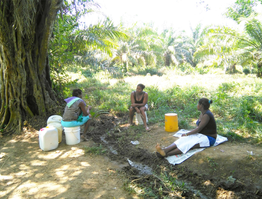 Mientras reflexionaba sobre las políticas cotidianas de la contaminación, me acordé de Leticia, el nombre que la comunidad dio al acuífero más cercano al pueblo. Rodeado de palma aceitera y colonizado por sus raíces, era también un lugar para disfrutar y contar historias. En el transcurso de mi trabajo de campo Leticia acabaría desapareciendo, su agua completamente agotada. Su desaparición interrumpiría la certeza normalizada de su existencia y el carácter ordinario de su materialidad contaminada. Para muchas personas, se convirtió en un símbolo de los efectos trágicos de la invasión de la palma a los comunes, un recordatorio de sus amenazas a la supervivencia física. Para otras, era tan solo otra instancia de la precariedad material a la que cada vez se acostumbraban más.
