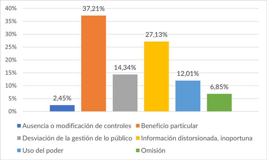 La corrupción en las entidades del Estado está relacionada con el abuso de poder ejercido por los servidores públicos para beneficiarse a sí mismos o en pro del beneficio de particulares. Además, la aceptación y expansión de la corrupción es parte de la cultura de la entidad y está relacionada con el encubrimiento sistemático por parte de los grupos beneficiados y las nulas acciones para prevenirla. De acuerdo con Bardhan (2022) , el abuso del poder es una tendencia que se repite en las diferentes acepciones como característica fundamental (Galán, 2013). La probabilidad de que se use el poder para desviar la gestión de lo público hacia el beneficio privado, ya sea por acción u omisión, se denomina riesgo de corrupción (Departamento Administrativo de la Función Pública, 2016).