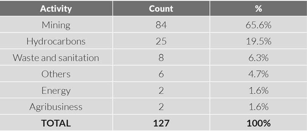 Table 2 Socio-environmental Conflicts by activity as of November 2021