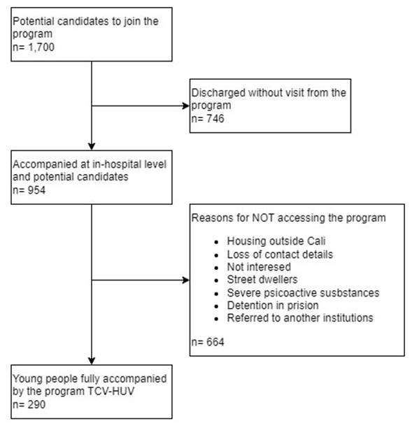 Figure 1 Flowchart of young people who eventually enter the Transforming the Circle of Violence (TCV)- Hospital Universitario del Valle (HUV) program.
