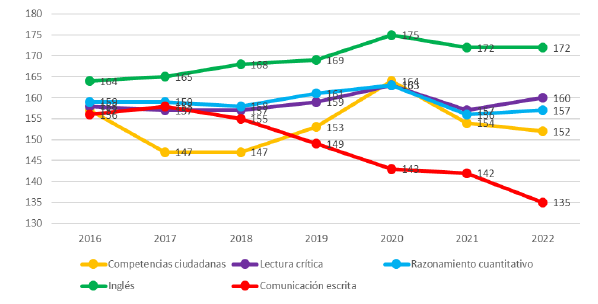 Figura 1 Resultados competencias genéricas Saber Pro, Universidad de La Salle 2016-2022