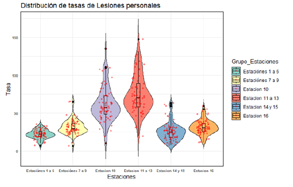 La Figura 2 resume la información sobre las tasas de lesiones personales analizadas.