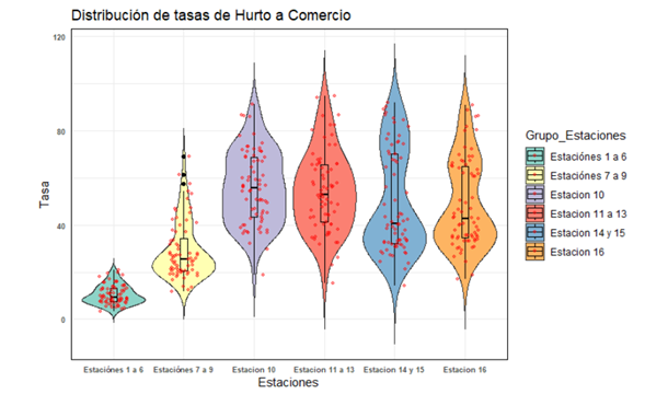 La Figura 4 resume la información sobre las tasas de hurto al comercio analizadas.