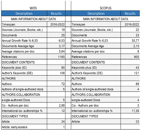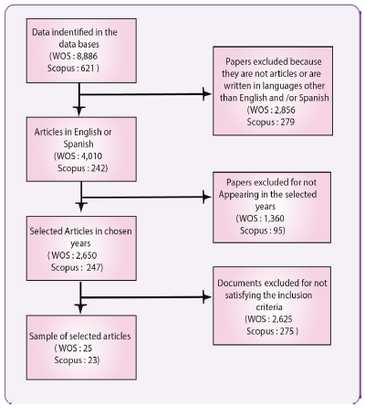 The scientific publications (WOS: 25 and Scopus: 23) were chosen taking into account these criteria: