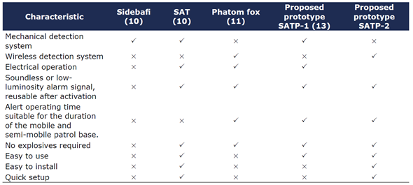 Table 1 Comparison of some characteristics of reported systems and the proposed SATP for assisting early warning human detection in critical areas in control operations