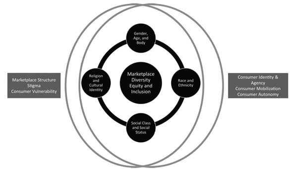 Desde una perspectiva más actualizada, se presenta el Modelo de diversidad, equidad e inclusión (DEI) propuesto por Arsel et al. (2022), en el cual se retoman conceptos desarrollados hace 14 años, ahora valorados en términos capitalistas, como el consumo y el mercado, centrándose en la generación de valor existente en la diversidad de los consumidores (clientes) (véase Figura 2).
