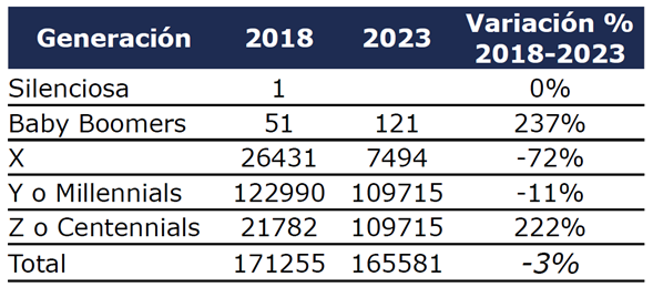 De acuerdo con la Tabla 1, la Policía Nacional de Colombia actualmente cuenta con uniformados de cuatro generaciones como integrantes en servicio activo; desaparece la Generación Silenciosa y presenta un aumento significativo la Generación Baby Boomers y la Generación Z o Centennials; en contra posición ha disminuido su representación en la Institución las generaciones X e Y o Millennials, lo que significa una disminución del pie de fuerza policial del 3%.