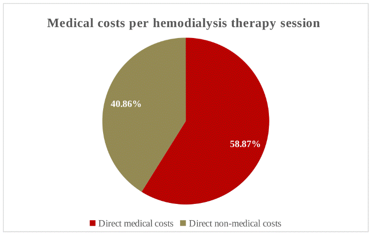 The direct medical cost corresponds to the cost of the dialysis session including the drugs used in each session, the outpatient medications related to kidney disease, in addition to consumables, laboratory tests, procedures used (fistula placement), and the fees of the assisting personnel. The non-medical cost corresponds to the cost of transportation, food, and other factors that add to the total cost of therapy, such as additional care.