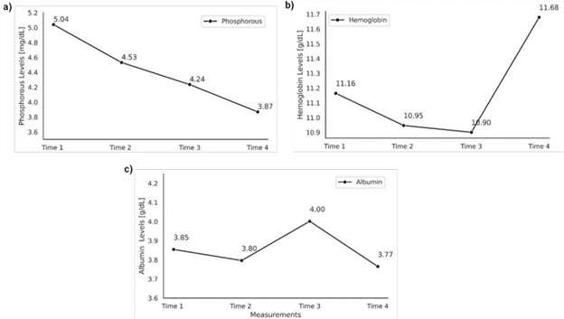 Figure 4 Phosphorus, hemoglobin and albumin Levels
