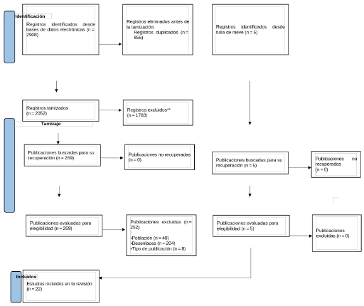 Otra fuente de información complementaria fue la búsqueda manual con la metodología bola de nieve, mediante revisión del listado de referencias bibliográficas de los estudios seleccionados.
